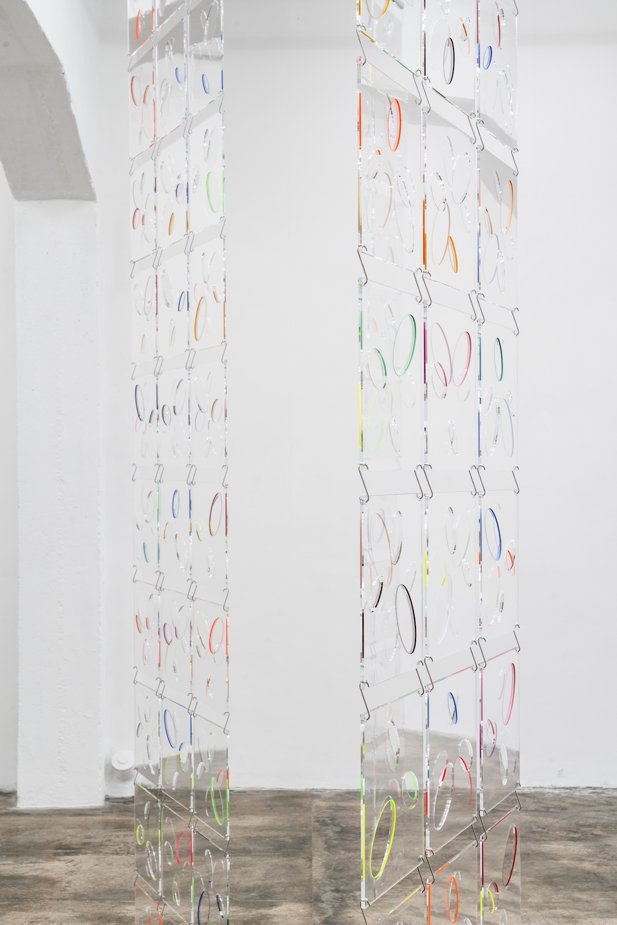 Against the idea that Geometric Abstraction has to be necessarily cold and distant, Carla Arocha and Stéphane Schraenen prove the exact opposite. Behind a scrupulous formalist body of work, the artists place there viewer’s experience at the core of their artistic concerns thus bringing into it notions such as fragility, memory or absence. By disrupting spaces, suspending meaning, and provoking a certain degree of confusion, the artists ask the beholder to make an effort to delve into their minds, for as long as they wish, questioning the reality that surrounds them. Once we realise the artworks are responsive and we have a role in it a whole new dimension of ‘Spinning Rumours Ópalo’ kicks in giving us the opportunity to be affected in ways we had not yet considered.